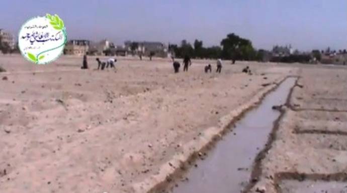 أظهر تسجيل مصوّر بثه ما وُصف بـ "المكتب الإغاثي الموحد في الغوطة الشرقية بدمشق- المكتب الجنوبي"، نشاطات يقوم بها ناشطون وما بدا بأنه مقاتلون من المعارضة المسلحة، لاستصلاح أراضٍ في الغوطة الشرقية، بعد أن تحولت إلى مكبات للقمامة، بسبب الحصار وإغلاق الطرقات.