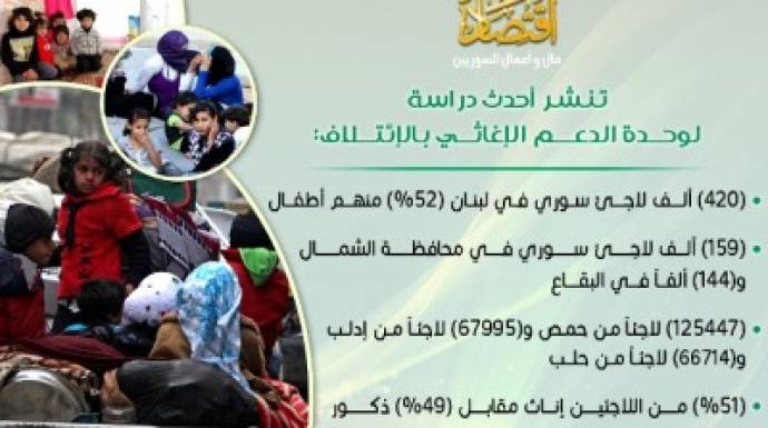 خصت وحدة تنسيق الدعم الإغاثي والإنساني (ACU) التابعة للإئتلاف الوطني السوري "إقتصاد" بالدراسة الإحصائية الشاملة التي أجرتها عن اللاجئين السوريين في لبنان، معتمدةً بذلك على إحصائيات المفوضية السامية لشؤون اللاجئين في الأمم المتحدة (UNHCR).