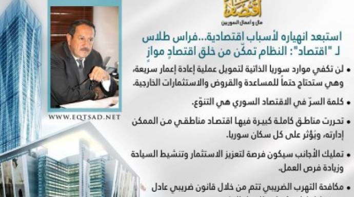 حوار اقتصادي موسع مع فراس طلاس... تمليك الأجانب فرصة لتعزيز الاستثمار وبدأنا بتشكيل "نواة رجال أعمال" من الداخل