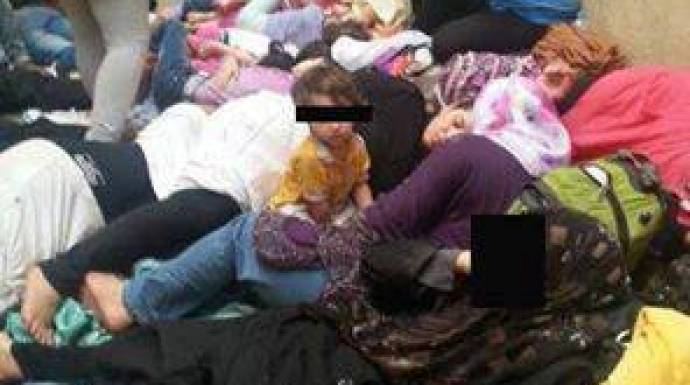 صورة تظهر عائلات سورية وفلسطينية محتجزة من الأمن المصري ...بانتظار ترحيلهم إلى سوريا