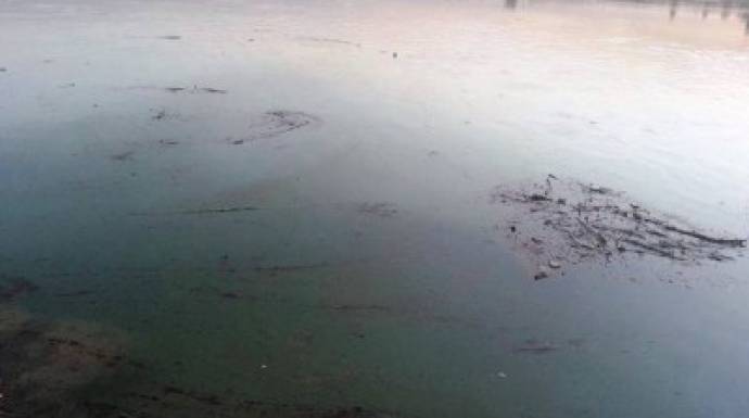 وقد ظهرت في التسجيل بقع النفط والزيت الطافية على سطح النهر بوضوح.