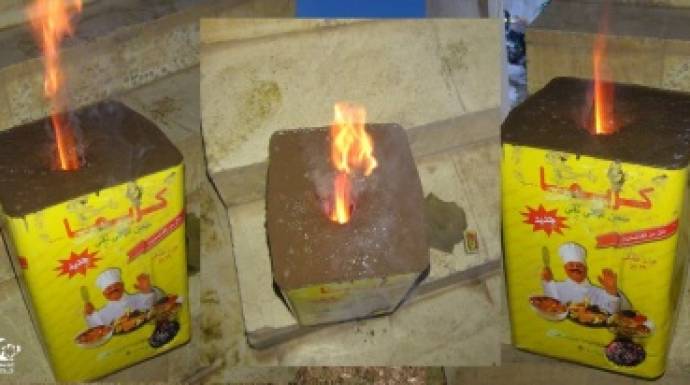 وهكذا يمكن إشعال النار في أسفل "التنكة" بحيث يدخل الهواء من الفتحة الموجودة في أحد زواياها من الخارج، لتخرج النار من الفتحة العلوية وسط الطبقة الطينية. ليكون بين يدينا "ببور" يمكن استعماله في نشاطات الطبخ وإعداد الطعام والشاي وخلافه.