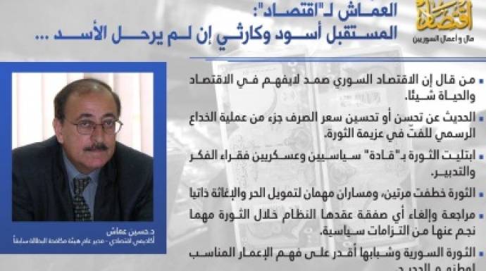 من قال إن الاقتصاد السوري قد صمد لا يفهم في الاقتصاد والحياة شيئاً....العماش: المستقبل أسود وكارثي إن لم يرحل الأسد