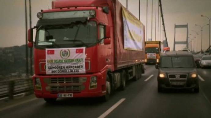 وأفاد المسؤول عن مخزن الخدمات اللوجستية، لهيئة الإغاثة التركية، في كيليس، "طلحة سلمان كاظم" أن 48 شاحنة تحمل مواداً إغاثية، وصلت المدينة، ضمن حملة "أنا أحتاج مساعدتك"، مشيراً أن تلك الشاحنات تم التبرع بها من مختلف المدن التركية.