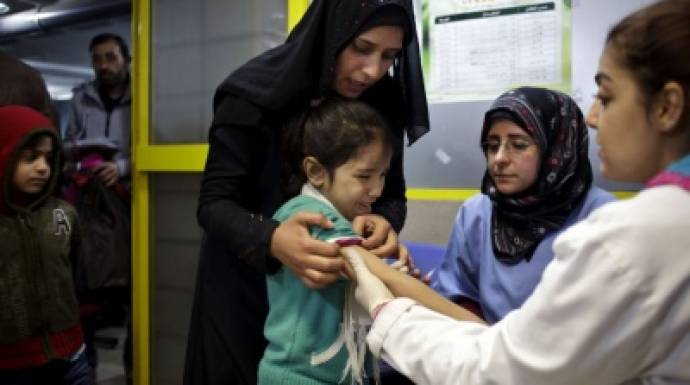 وانهارت الخدمات الصحية الأساسية فى شمال سوريا، ومن ضمنها التحصين الشامل، عندما تحولت ثورة سلمية ضد الرئيس السورى بشار الأسد قبل ثلاث سنوات إلى حرب أهلية، تركت حوالى 9.3 مليون شخص بحاجة للمساعدة.