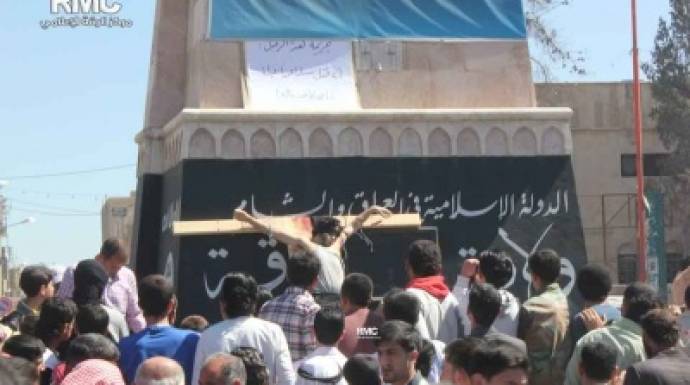قام تنظيم "الدولة الاسلامية في العراق والشام" أمس الجمعة بإعدام أحد عناصره رميا بالرصاص في ريف حلب شمال سوريا، وصلبه في ساحة عامة بتهمة "أخذ اموال" على الحواجز، بحسب المرصد السوري لحقوق الإنسان ومواقع إلكترونية جهادية.