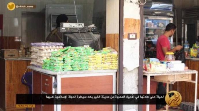 وأكدت "الدولة" في تقريرها أن الحياة عادت في الأحياء "المحرّرة" من مدينة "الخير" بعد سيطرة "الدولة الإسلامية" عليها. وتُظهر إحدى الصور بقالية سلع غذائية فيها متسوّق واحد فقط، في إشارة إلى عودة النشاط التجاري للمدينة، حسب "الدولة".