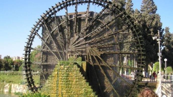ويُذكر أن النواعير التي يبلغ عددها أربعين ناعورة في حماة هي عبارة عن آلات مائية خشبية تدور بالقوة المائية، وتنقل الماء منه بواسطة صناديق إلى حوض علوي ومنه يجري في قنوات محمولة على قناطر للاستفادة منها في الشرب وسقاية البساتين.