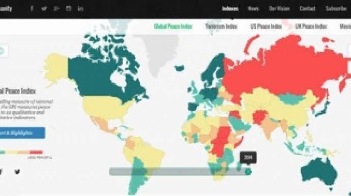 وحسب التقريره السنوى لمعهد الاقتصاد والسلام عن مقدار العنف فى كل دولة من دول العالم، تبين أن هناك 11 دولة فقط من 162 دولة فى العالم لم تتورط فى الصراعات الإقليمية والدولية أو حتى الداخلية، وتنعم تلك الدول بالسلام والاستقرار، وتأتى على رأس تلك القائمة: أيسلندا، الدنمارك، النمسا، نيوزيلندا، سويسرا، فنلندا، كندا، اليابان، بلجيكا، النرويج، التشيك على الترتيب.