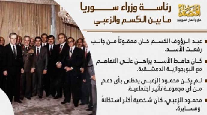 يمكن لمن يراجع شخصيات رؤوساء وزراء سوريا خلال حكم الأسد الأب، أن يلحظ فارقاً بارزاً بين حقبتي عبد الرؤوف الكسم، وخلفه، محمود الزعبي، وهي أن شخصية الأخير أكثر استكانة ومسايرةً، وهي الشخصية المُحبذة للنخبة الأمنية –العسكرية الحاكمة للبلاد، مما جعل الزعبي صاحب أطول فترة كرئيس للوزراء، لكن طول فترة إدارته لهذا الموقع، وإطلاعه على الكثير من الملفات التي تتضمن حقائق خطرة عن فساد الثُلة الحاكمة، جعل محمود الزعبي شخصية خطرة على مصالح آل الأسد والمقربين منهم.