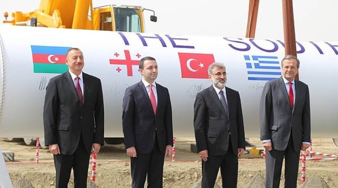 وضع اليوم في في محطة سانغاجال بالقرب من العاصمة الأذربيجانية باكو، حجر الأساس لـ"ممر غاز جنوب القوقاز"، في حفل رسمي حضره الرئيس الأذري "إلهام علييف"، ورئيس الوزراء الجورجي، "إراكلي غاريباشفلي"، والرئيس البلغاري "روسن بليفنليف"، ورئيس الوزراء اليوناني "أندونيس ساماراس"، ورئيس وزراء الجبل الأسود "ميلو جوكانوفيج"، ومثل الجانب التركي وزير الطاقة والموارد الطبيعية "طانر يلدز".