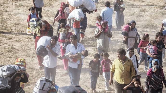 قال نائب رئيس وزراء تركيا نعمان قورتولموش يوم السبت إن عشرات الآلاف من أكراد سوريا عبروا الحدود إلى تركيا خلال يوم الجمعة وذلك هربا من مقاتلي تنظيم الدولة الاسلامية الذين سيطروا على عشرات القرى قرب الحدود.
