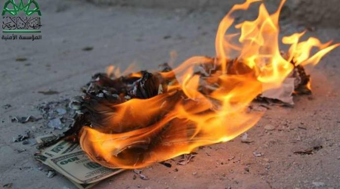 وأكدت المؤسسة الأمنية التابعة للجبهة الإسلامية في إعلانها أنها ألقت القبض على مجموعة من الأشخاص تروج لعملة المزور من 100 دولار، وبأنها أتلفت 20 ألف دولار من فئة 100 دولار، وبأن المجموعة حاولت ضخ كمية الأوراق النقدية المزورة في أسواق حلب المحررة.