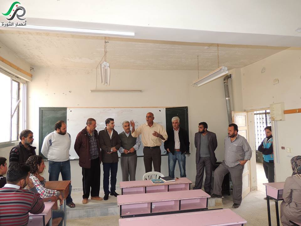 تعرض التعليم في سوريا لهزات قوية خلال السنوات الأربع الماضية، وفي هذا السياق يقول مدير المشروع المكلف: "نحن كمكتب تعليمي في "تجمع أنصار الثورة السورية"، كانت نشاطاتنا منذ بدء العمل متوجهة لـ"رأب الصدع"في مجال التعليم، فقمنا بعدة نشاطات، ومنها مدرسة في ريف حمص بمنطقة الزعفرانة، وفي مدينة الأتارب ولدينا روضة لأبناء الشهداء منذ أكثر من عام، وكذلك مدرسة لطلاب الشهادتين الإعدادية والثانوية تضم معظم طلاب المنطقة وبالمجان أيضاً، ولدى المكتب التعليمي نشاطات دائمة في مجال توزيع القرطاسية -كما يؤكد أبو الوليد-: "قمنا يتوزيع القرطاسية في بداية العام الدراسي السابق في الأتارب، وفي بداية الحالي في كل من "الأتارب" في ريف حلب و"بسقلا" في ريف إدلب.