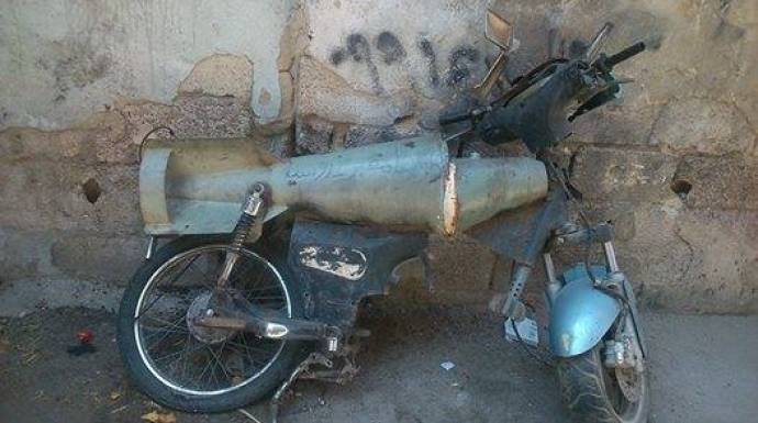 نشرت صفحات على "فيسبوك" صورة دراجة نارية مُركبة من بقايا صاروخ من صواريخ نظام الأسد المُتساقطة بصورة يومية على مناطق غوطة دمشق.