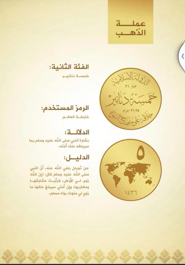 يعتزم تنظيم "الدولة الإسلامية" إصدار عملة خاصة به تعتمد على القيمة الحقيقية لمعدني الذهب والفضة، ويتم سكها من معادن الذهب والفضة والنحاس، لتُعتمد بدل العملات الورقية المتعارف عليها في النظام المالي العالمي.