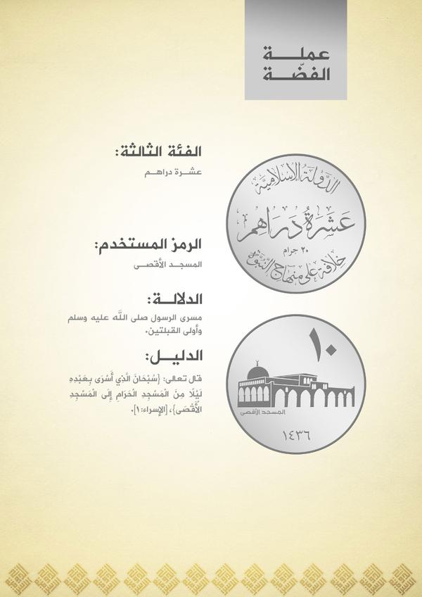 وفي بيان صادر عن "ديوان بيت المال" التابع لـ"التنظيم"، تمت الإشارة إلى أن النقود المُزمع إصدارها ستكون بديلاً عن "النظام المالي الطاغوتي الذي فرض على المسلمين وكان سبباً لاستعبادهم وإفقارهم وإهدار ثروات الأمة وجعلها لقمة سائغة بأيدي اليهود والصليبيين".