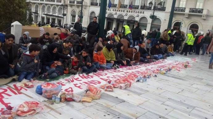 بدأ الإضراب عن الطعام أمس الاثنين بعد أن احتشد المحتجون الأسبوع الماضي فى ميدان سينتاجما بالعاصمة أثينا شاكين من إجبار اللاجئين على دفع إيجارات باهظة للإقامة في مساكن حقيرة في أثينا.