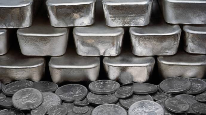 ونزلت الفضة 6.4 بالمئة إلى 14.42 دولار للأوقية.