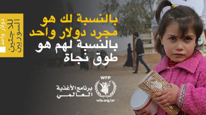 وقالت المديرة التنفيذية لبرنامج الأغذية العالمي "إرثارين كازين": "دولار واحد يمكن أن يصنع فرقاً كبيراً. ونحن نقول للناس: بالنسبة لكم إنه دولار واحد، ولكنه بالنسبة لهم طوق نجاة. نحن نعلم أن الناس يهتمون لهذه القضية وندعوهم لأن يترجموا اهتمامهم عبر التبرع بهذا المبلغ الضئيل من المال إلى اللاجئين السوريين".