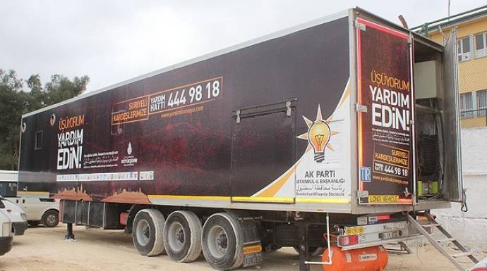 وصلت إلى ولاية "شانلي أورفا" التركية الحدودية مع سوريا، 20 شاحنة محملة بالمساعدات، ضمن قافلة مساعدات مكونة من 134 شاحنة، مخصصة للاجئين السوريين، في إطار حملة تحمل شعار "أشعر بالبرد، ساعدني"، يأتي على رأس منظميها مكتب حزب العدالة والتنمية في إسطنبول.