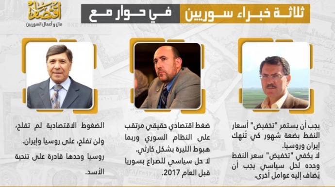 في ضوء ما سبق، قررت "اقتصاد" استقصاء آراء ثلاثة من الخبراء الاقتصاديين السوريين، الذين يتمتع بعضهم بخبرة مباشرة، أو غير مباشرة، بقطاع النفط وتجارته، بغية معرفة الأثر المُرتقب لانخفاض أسعار النفط على أدوار ومواقف الأطراف المتصارعة في سوريا، إقليمياً ودولياً.