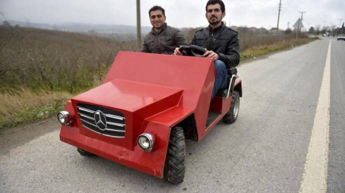 تمكن التركي حسن سُنقر (26 عاما) الحرفي الخبير في مجال الخراطة والتسوية من صناعة سيارة تسير بمحرك مضخة مياه بسرعة 50 كيلومترا في الساعة.