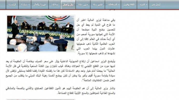 وأضاف اسماعيل اسماعيل وزير المال لدى النظام أن همّ حكومته اليوم هو تأمين القطاعين العسكري والأمني والصحة والمشافي والسلع الغذائية والسلع الأولية لقطاع الصناعة، وهذا يتطلب من الجميع العمل ضمن الإمكانيات المتاحة، وهناك غياب للتوازن بين الكتلة السلعية والنقدية في ظل الأزمة الحالية ما يجعلنا أمام خيار واحد وهو الاستدانة، لكن هذا ما رفضته القيادة رفضا قاطعا ولا يمكن أن نقبل بوضع أنفسنا رهينة البنك الدولي -على حد قوله-.