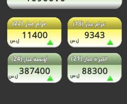 ارتفع الذهب بدمشق، اليوم الاثنين، بصورة طفيفة، 50 ليرة لغرام الـ 21. وحسب جمعية الصاغة بدمشق، بقي الذهب، أصبح غرام الـ 21 بـ 11850 ليرة، فيما أصبح غرام الـ 18 بـ 10157 ليرة.