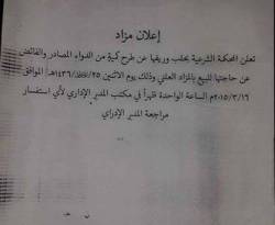 أبلغت "المحكمة الشرعية بحلب وريفها"، أمس الأربعاء، كافة الهيئات الطبية العاملة في محافظة حلب عن نيتها بيع كمية من الدواء "المصادر" والفائض عن حاجتها بالمزاد...