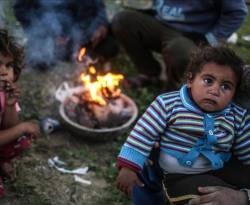 تمسك الطفلة الفلسطينية نرمين المصري، بأناملها الصغيرة، قطعة خشبية صغيرة، وتضعها على موقد نار، أشعله والدها، في محاولة لزيادة لهيبه، عله يمنحها قليلا من الدفئ....
