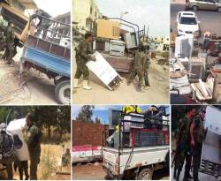 بدأت المواد المعفًشة من بلدة "حلفايا" تصل إلى محافظة اللاذقية، وحواجز نظام الأسد تفرض ضرائب على المسروقات، وأصحاب محلات المفروشات الجديدة والأجهزة الكهربائية...