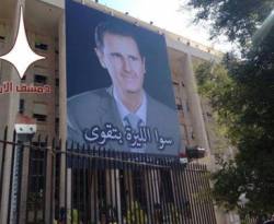 بابتسامة عريضة، وإطلالة "مهيبة"، ترتفع لوحة ضخمة للغاية، على باب مصرف سوريا المركزي، تحمل صورة "بشار الأسد"، وفي أسفلها عبارة "سوا الليرة بتقوى"، في اقتباسٍ من شعار...